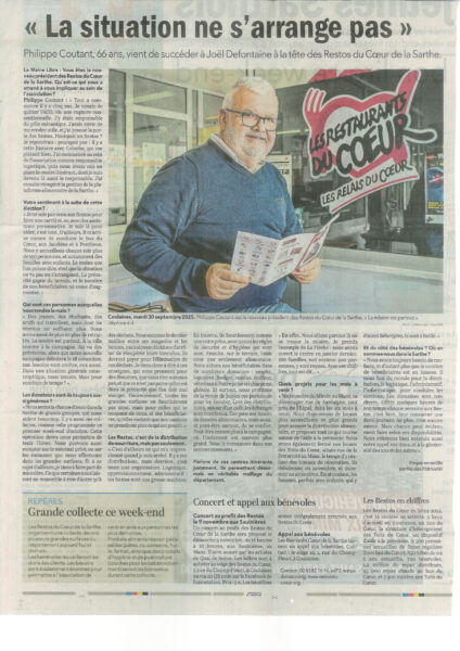 La presse locale s’est déplacée au Siège des Restos de la Sarthe pour faire la connaissance du nouveau Président de l’AD 72 élu lors de la dernière Assemblée Générale. C’est avec plaisir que toute l’équipe a accueilli à sa présidence Philippe Coutant en remplacement de Joël Defontaine qui a bien mérité sa retraite des Restos.